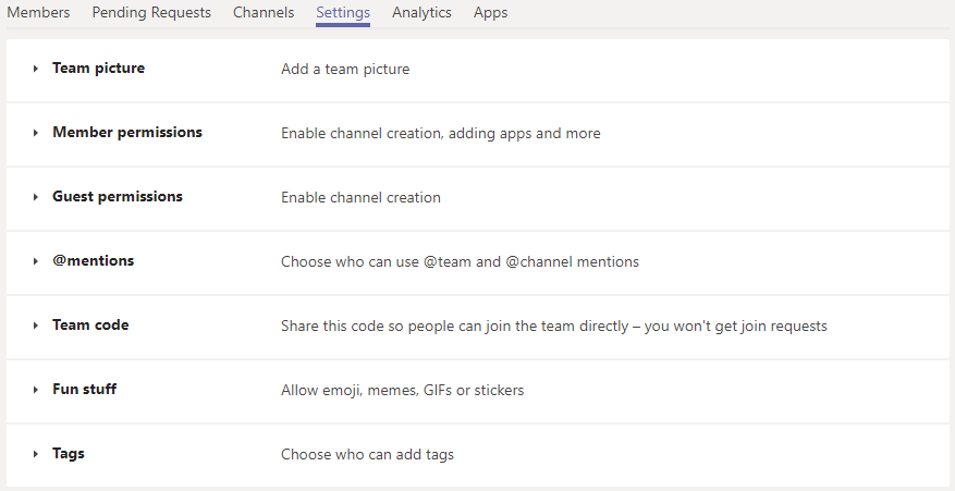 As a Teacher or Educational Practitioner you should be focused on how, where and when your students engage with yourself and others. It is important to make sure that all communication and collaboration is meaningful and takes place in the correct place. Control the setting for your groups and the level of interaction in Manage Team option, from here you can set the permissions for Members (your students) of the group.
