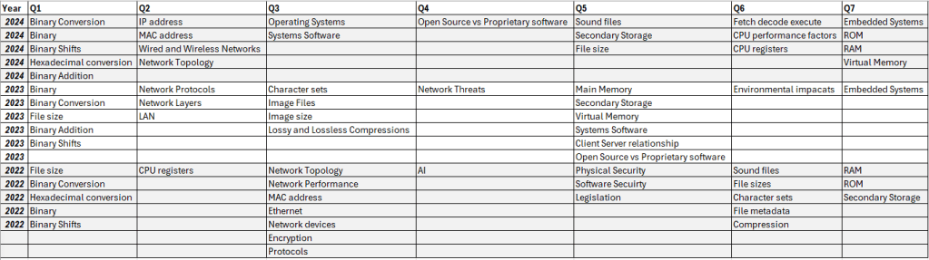 I have taken the time to review the previous exams released for J277/01 and J277/02 and shown the collection of content linked to different areas of the exam over the past 3 years.